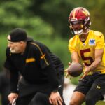 The Washington Commanders were back on the field for Day 2 of training camp Thursday. Quarterback Jayden Daniels took center stage again with several impressive throws and looked more comfortable in the offense than veteran Marcus Mariota. Mariota took most of the first-team reps, but the two did split time. The team did more red-zone work as they continued to ramp things up … [Read more...] about Sights and sounds from Day 2 of Commanders’ training camp