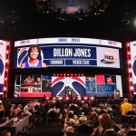 Photo by Jeff Haynes/NBAE via Getty Images Jones played four years for the Weber State Wildcats. On Wednesday, the Washington Wizards selected Dillon Jones, a 6’5 guard from Weber State, with the No. 26 overall pick of the 2024 NBA Draft. Jones played four years for the Wildcats, where he was named the 2023-24 Big Sky Conference Player of the Year. He averaged 20.8 … [Read more...] about Wizards select Jones No. 26 overall before trade with Knicks