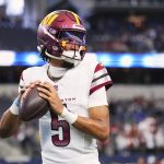 Kevin Jairaj-Imagn Images Dan Quinn and Jayden Daniels talk to the media Dan Quinn, Jayden Daniels, Marcus Mariota, and Terry McLaurin spoke to the media after today’s come from behind win over the Dallas Cowboys. Washington’s offense wasn’t getting much done in the first half and the Commanders switched QBs after halftime. It was reported as a coaching decision at the … [Read more...] about Dan Quinn and Jayden Daniels talk about win vs Cowboys, playoffs, and “leg soreness” leading to QB switch