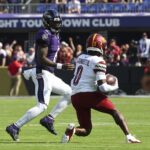 Mike Sainristil #0 of the Washington Commanders runs the ball after an interception as Lamar Jackson #8 of the Baltimore Ravens attempts to make the tackle at M&T Bank Stadium on October 13, 2024 in Baltimore, Maryland. | Photo by Kara Durrette/Getty Images A collection of articles, podcasts & tweets from around the web to keep you in touch with the Commanders … [Read more...] about Daily Slop – 24 Oct 24: Spotlight film breakdown on rookie CB Mike Sainristil