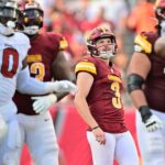 Cade York #3 of the Washington Commanders reacts as he watches his field goal attempt miss in the third quarter of the game against the Tampa Bay Buccaneers at Raymond James Stadium on September 08, 2024 in Tampa, Florida. | Photo by Julio Aguilar/Getty Images News, links to articles, updates and more from DC area writers, national sports journalists and others The goal … [Read more...] about All aTwitter: 10 Sept 2024 – Commanders retain draft pick by changing kickers after Cade York’s ‘miss’-fires
