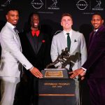 NEW YORK, NY - DECEMBER 09: Jayden Daniels quarterback LSU, Marvin Harrison Jr. wide receiver from Ohio State, Bo Nix quarterback, Oregon, Michael Penix Jr, quarterback, Washington pose with the Trophy during the Heisman Trophy press conference at the New York Marriott Marquis on December 9, 2023 in New York City, New York. (Photo by Rich Graessle/Icon Sportswire via Getty … [Read more...] about NFL Quarterback Prospect Labeled ‘Either Lamar Jackson…Or Johnny Manziel’