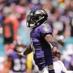 MIAMI, FLORIDA - SEPTEMBER 08: Lamar Jackson #8 of the Baltimore Ravens celebrates after throwing a 47-yard touchdown to Marquise Brown #15 (not pictured) during the first quarter against the Miami Dolphins at Hard Rock Stadium on September 08, 2019 in Miami, Florida. (Photo by Michael Reaves/Getty Images) Lamar Jackson may welcome back … [Read more...] about Lamar Jackson Hopeful For Big Return For Ravens This Week