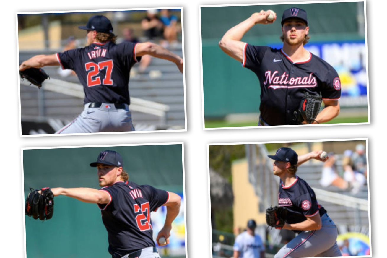 Jake Irvin made his first two appearances of the spring this year in relief, and the 27-year-old right-hander struggled, with two hit batters, four Ks, two hits, and one run allowed the first time out, and then a total of five hits, two walks, and seven runs, six earned, allowed in 1 2⁄3 innings pitched his second time on the mound.