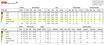 “A little frustrating,” Corbin acknowledged, as quoted by MASN’s Mark Zuckerman, after a five-strikeout appearance, picking up 12 swinging strikes, spread out over four of his pitches, and 14 called strikes, seven with his sinker, in a 94-pitch, 61-strike turn in the rotation.