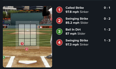 No, we could not. Anthony Santander popped out, and to replace starter Seth Lugo, the Royals went to lefty reliever Angel Zerpa, who quickly made it 0-2 against Colton Cowser, missed with a slider in the dirt, and then got the rookie outfielder to come around, hands and body, on this pitch: #4.