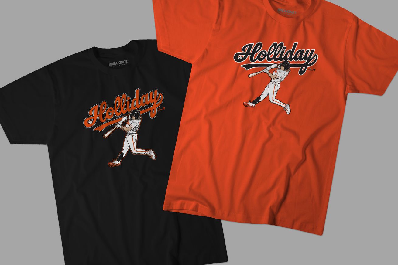 Our friends at BreakingT are out with a new design featuring Holliday for anyone who’s looking to add something new to their O’s wardrobe along with this season. The shirt, which features Holliday and his sweet-looking swing, is available in two color schemes – black with orange text, and orange with black text. He looks great on both.
