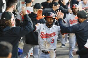 With one out in the last of the ninth, four runs in and runners on first and second, Oriole manager Brandon Hyde called on his third reliever of the inning, closer Craig Kimbrel. He got Andrew Benintendi to hit a pop fly in the infield that shortstop Gunnar Henderson caught after bumping into baserunner Andrew Vaughn, who was called for interference, resulting in a game-ending double play.