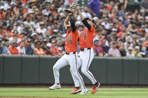 The Orioles (61-43) should have been out of the second inning, but third baseman Ramón Urías was charged with an error on a two-out popup that allowed Jackson Merrill and David Peralta to score. Urías and shortstop Gunnar Henderson converged on Kyle Higashioka’s popup and it dropped out of Urías’ glove.
