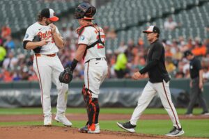 What’s going on in the minor leagues? Bruce Zimmermann (2-4) allowed four runs on three hits, walking four and striking out three in 4 1/3 innings as Triple-A Norfolk lost to Memphis, 7-2. Centerfielder Kyle Stowers and third baseman Coby Mayo hit their 17th and 19th home runs consecutively in the sixth inning.