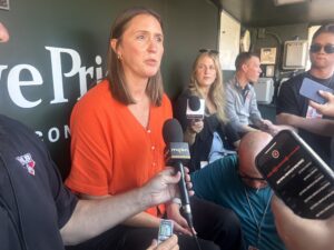 Catie Griggs: “I think I’ve sat in roughly 15 different spots in the ballpark so far. This is an incredible location, but it’s new to me. I know that, and the only way I can get to know that is by experiencing it. We serve our fans. I want to understand what they’re going through. I was in the Splash Zone in the sixth inning the other night against the White Sox. I got real wet. It was a lot of fun. It’s been a joy really, getting to walk around the ballpark, get to understand how this space works, get to understand how this fits in our community and then spending a lot of time getting to know our staff.”