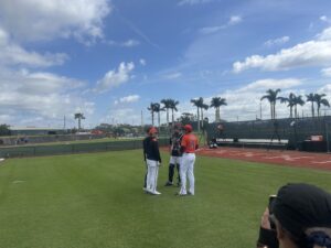 What’s happened? Live batting practice continued at Ed Smith Stadium with Zach Eflin, Keegan Akin, Bryan Baker and Corbin Martin pitching.