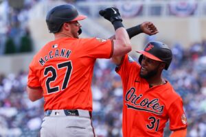 James McCann hit a three-run home run in the fifth against Bailey Ober (12-9). Jordan Westburg had a two-run single in the seventh. Heston Kjerstad homered for the first time since July 7th in the eighth.