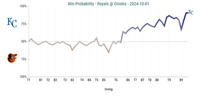 Positive WPA play of the game: Ryan O’Hearn walks in the bottom of the 9th. KC 1, BAL 0 (+13.4 WPA)