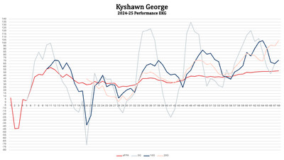 Anyway, to help me procrastinate on the YODA work, I ran a performance EKG for the team’s final “great young hope,” Kyshawn George.