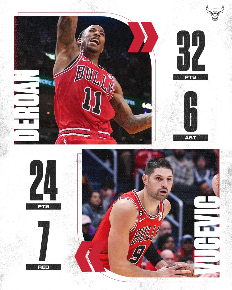 DeRozan is the first player in @Chicago Bulls history to record at least 30p/5r/5a in each of his first two games of a season. pic.twitter.com/nMXPYTt9t0 – 10:23 PM