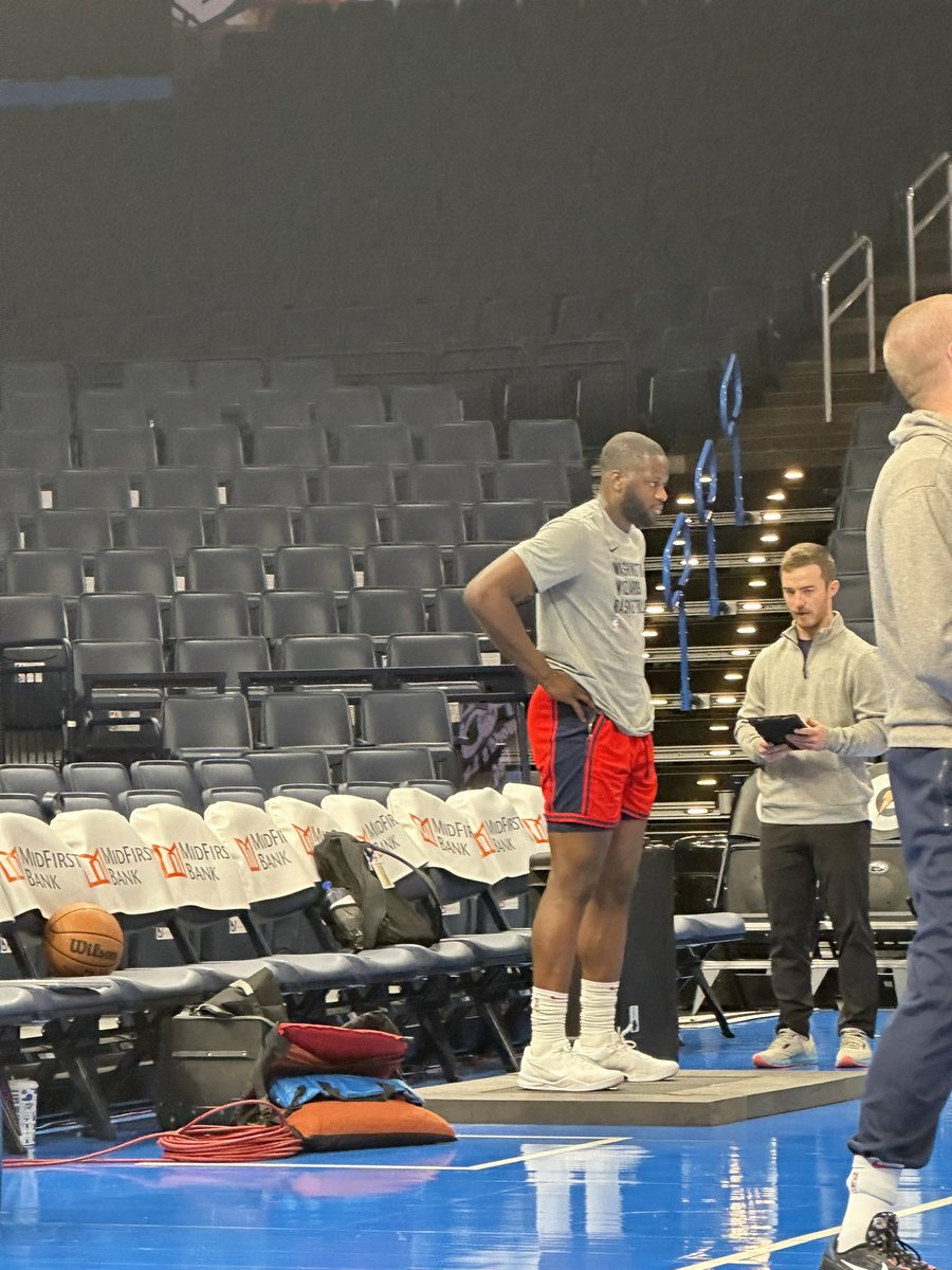 Bismack Biyombo checks in for his Thunder debut pic.twitter.com/htQXMmyUkE – 10:00 PM