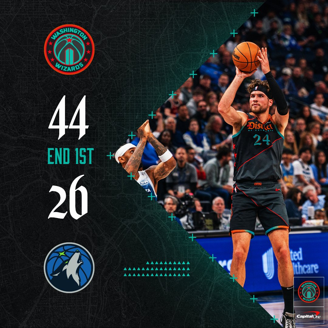 Just as @JonKrawczynski predicted (but actually), the Wizards lead the Timberwolves 44-26 after one. Naz Reid was ejected after hitting Johnny Davis in the head with an elbow. The Wiz are 17-27 from the floor and 9-13 from three. – 8:38 PM