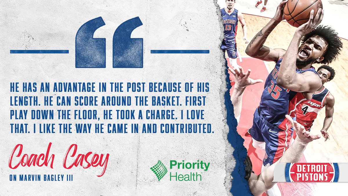 #Pistons Dwane Casey on Marvin Bagley III: “He’s very flexible and very versatile in the positions he can play.” – 10:09 PM