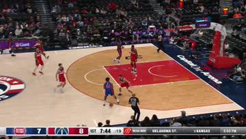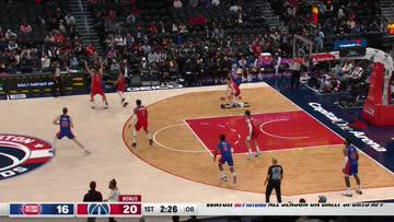 Kentavious Caldwell-Pope (back rocking the headband) with a nice transition block against Cade Cunningham who was out in front and then sprints back cutting to the basket leading to a Deni Avdija 3 assist. – 7:25 PM