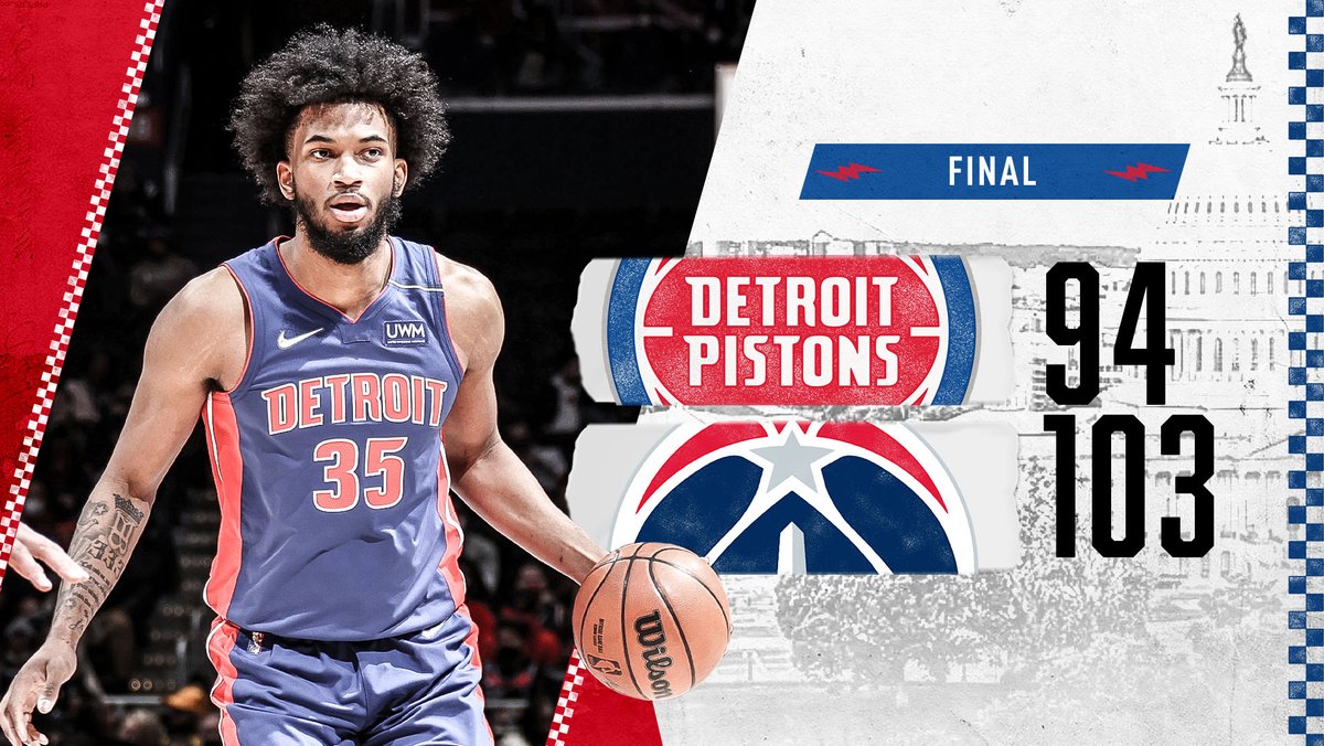 FINAL: Wizards 103, Pistons 94. Eight straight losses for Detroit, which shot just 37.6% overall and 34.8% from 3 tonight.