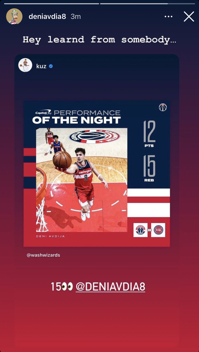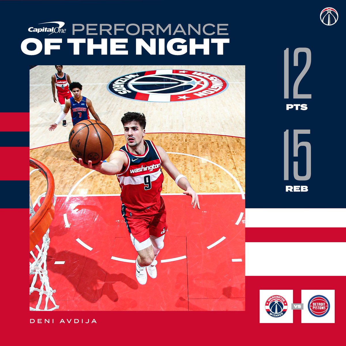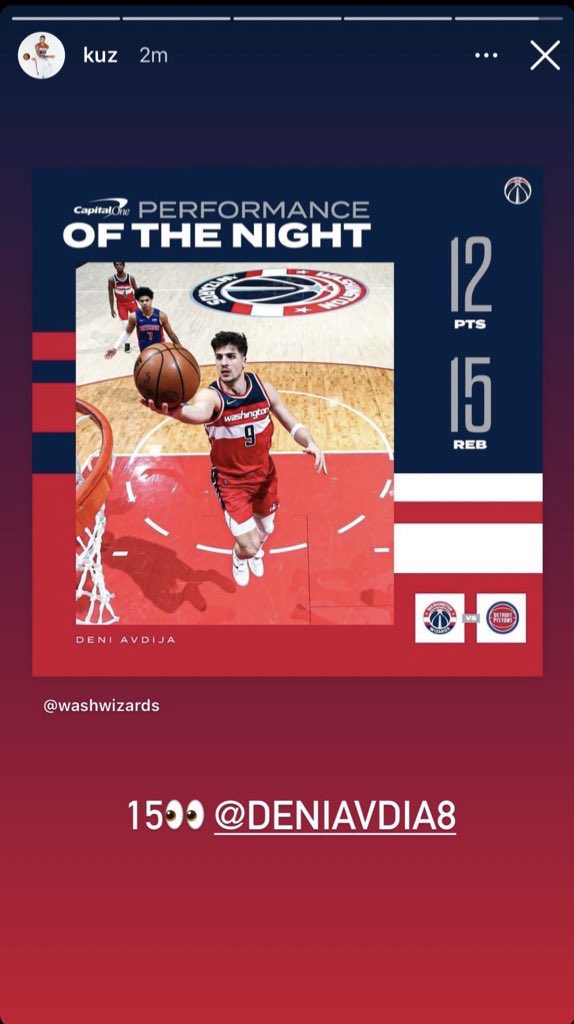 Deni Avdija with 12 points and 13 boards, and he just had a fantastic assist. #DCAboveAll – 9:18 PM