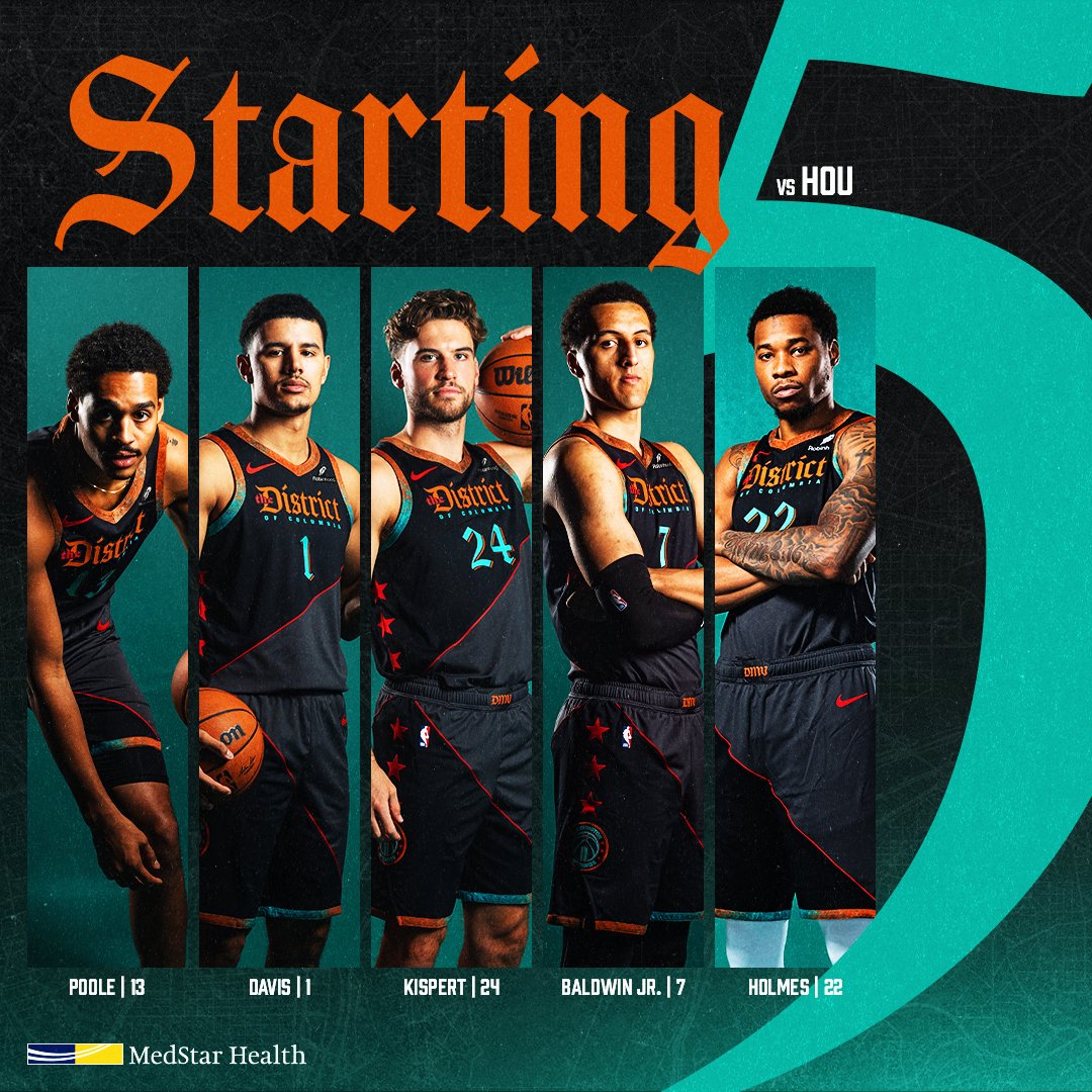 Wizards starters: Kispert, Baldwin Jr., Holmes, Davis, Poole. – 6:37 PM
