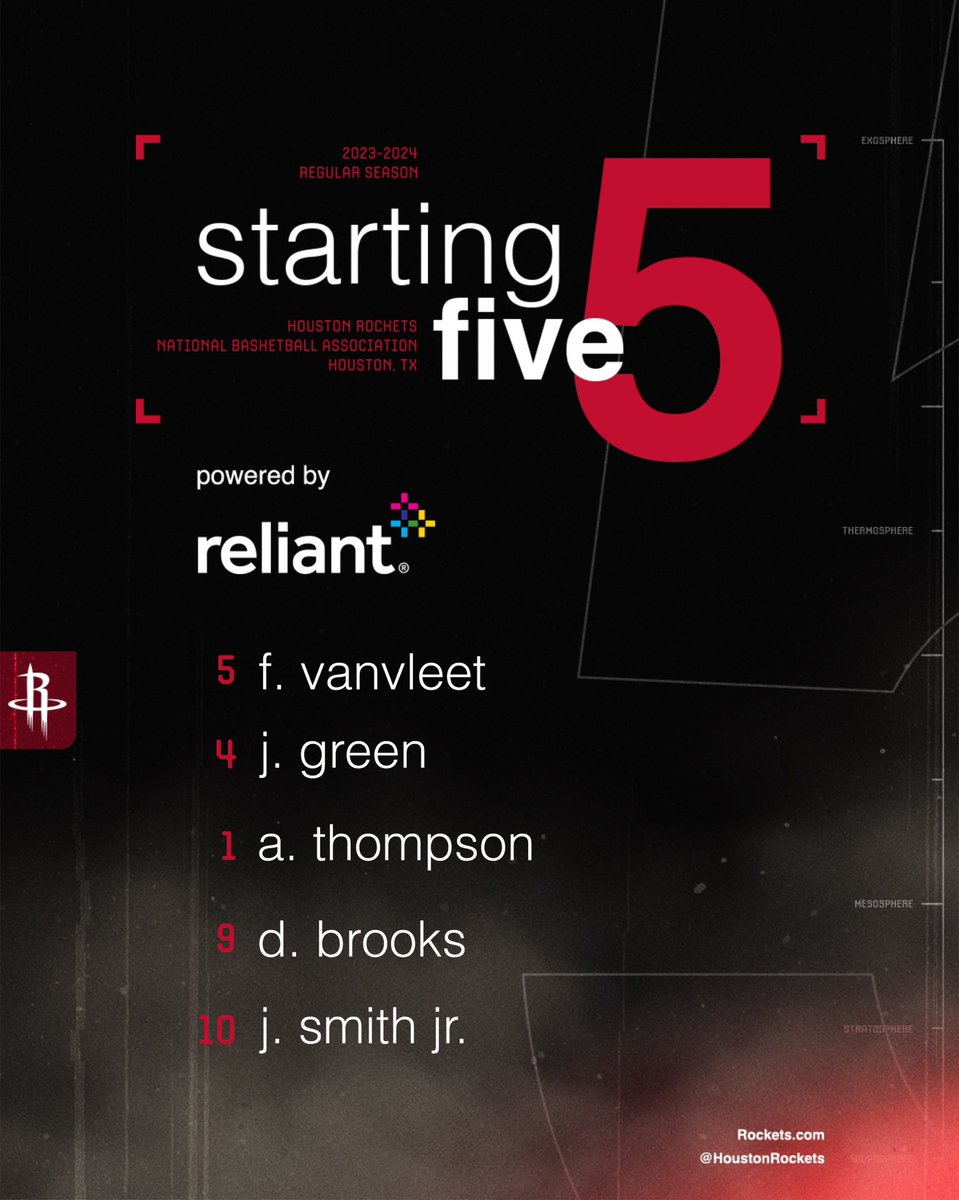Rockets starters: Thompson, Brooks, Smith Jr., Green, VanVleet.