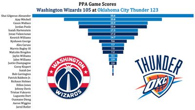 Missing Bilal Coulibaly, Alex Sarr, and Kyle Kuzma due to injury, the Washington Wizards hung tough against the vastly superior Oklahoma City Thunder before succumbing to a fourth quarter onslaught and losing, 123-105.