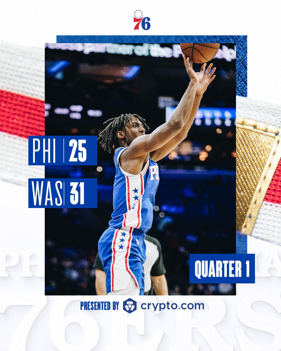 Wizards 31, Sixers 25 at the end of the first. Washignton led by as many as 11 thanks to 52.2 percent shooting and 18 points in the paint against the undersized Sixers. Maxey has 10 points on 3-of-6 from the floor. – 6:39 PM