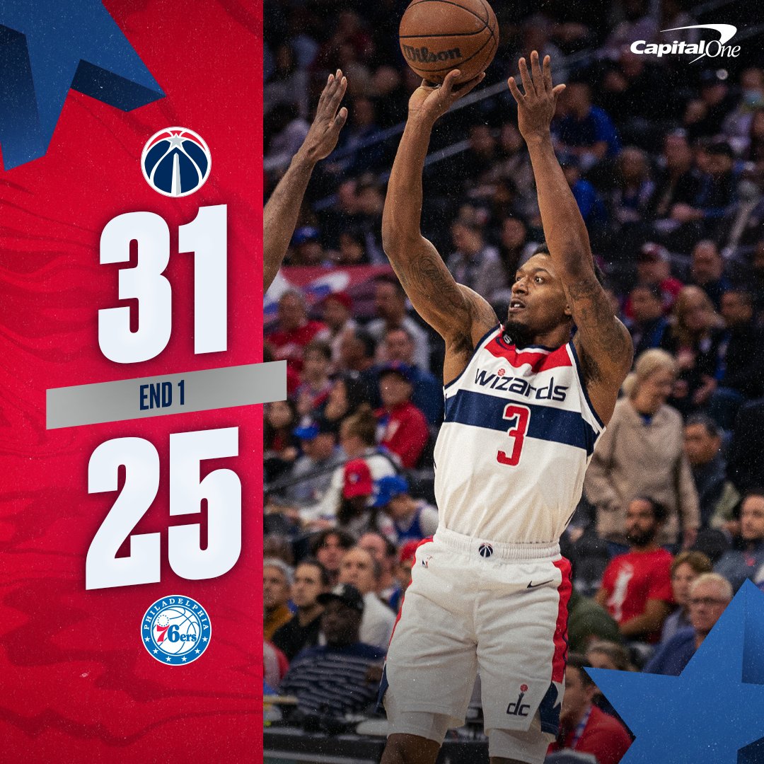 The Washington Wizards lead the Philadelphia 76ers after one quarter of play.