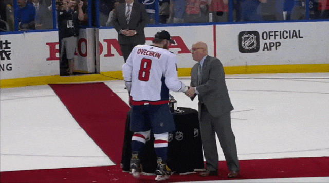 This moment, btw, is randomly delightful. It just feels very on brand for both guys that Ovi would pick up the trophy and try to carry it off while Orpik has to remind him to put it back so they can take a team picture: