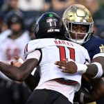 SOUTH BEND, Ind. — C.J. Carr threw for 342 yards and two touchdowns, and No. 16 Notre Dame beat N.C. State 36-7 on Saturday for its fourth straight victory. Carr connected on 19 of 31 passes, with TD tosses of 18 yards to K.K. Smith and 12 yards to Will Pauling in the third quarter. Jeremiyah Love rushed for 86 yards and two touchdowns for Notre Dame (4-2). The Fighting Irish … [Read more...] about No. 16 Notre Dame pulls away from NC State in the 2nd half for 4th consecutive victory