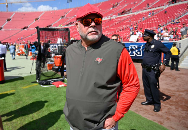 Bruce Arians may no longer be coaching the Tom Brady-led Bucs, but he’s still in the building.