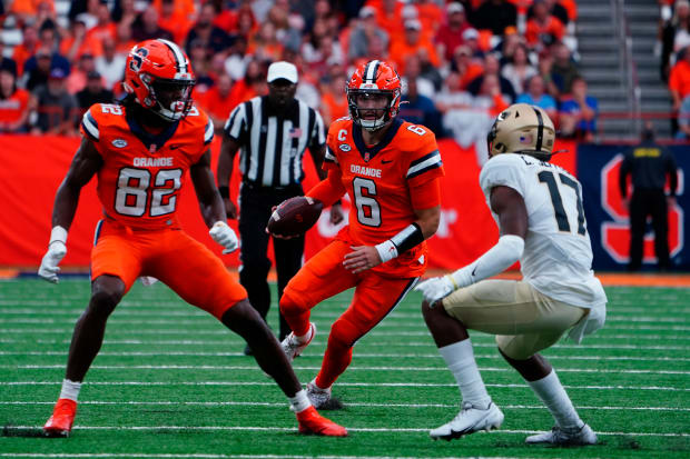 Shrader filled up the boxscore for Syracuse, completing 13-of-29 pass attempts for 181 yards and three touchdowns. He also had 83 yards on the ground.