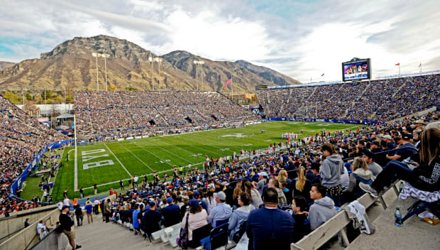 The 19th-ranked Cougars lead USU 14-7 early in the second quarter, but the Aggies are driving deep in BYU territory.