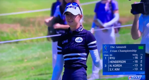 Video of a female fan picking up a golf ball and holding it up like a trophy has gone viral on social media.