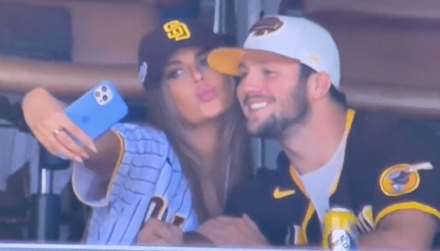 The happy couple is witnessing a pretty great game on Wednesday, too, as the Padres have stormed back to take a big lead over the Phillies.