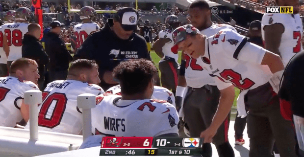 “I love that from him. I know we all love that from him. It might look weird on TV, but that’s football. That’s what you want from great teammates and great leaders, and he’s the best there is,” Bucs center Robert Hainsey said.