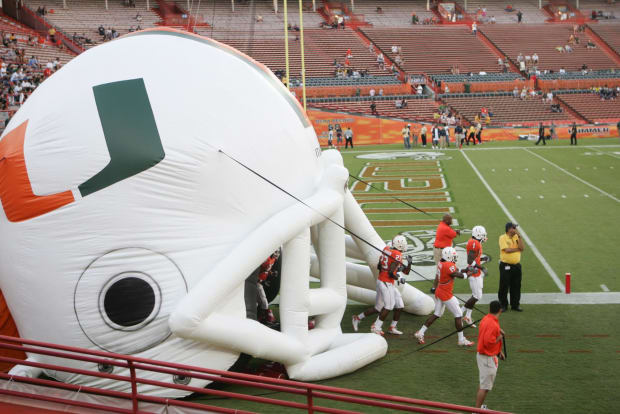 When the Orange Bowl shut down in 2008, Miami started playing its home games in the Dolphins’ Hard Rock Stadium. The NFL venue is 20 miles away from Miami’s campus.