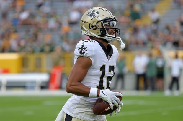 New Orleans Saints rookie wideout Chris Olave hauled in his first touchdown reception of his NFL career on Friday night.