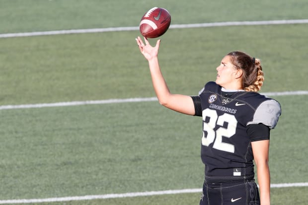 Fuller started her collegiate career at Vanderbilt before transferring to North Texas. Of course, she made headlines in 2020 when she suited up for Vanderbilt’s football team as a kicker.