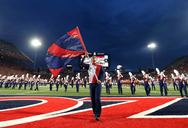 Arizona quarterback Jayden de Laura and wide receiver Dorian Singer were visibly upset with each other during the third quarter. De Laura actually shoved Singer after they exchanged words.