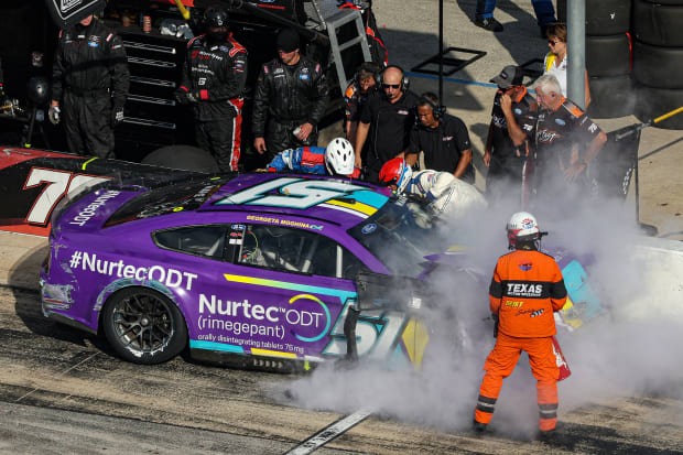 He had to be assisted out of his No. 51 Ford after a wreck halfway through Sunday’s NASCAR Cup Series playoff race, where he was then transported to the infield care center via ambulance.