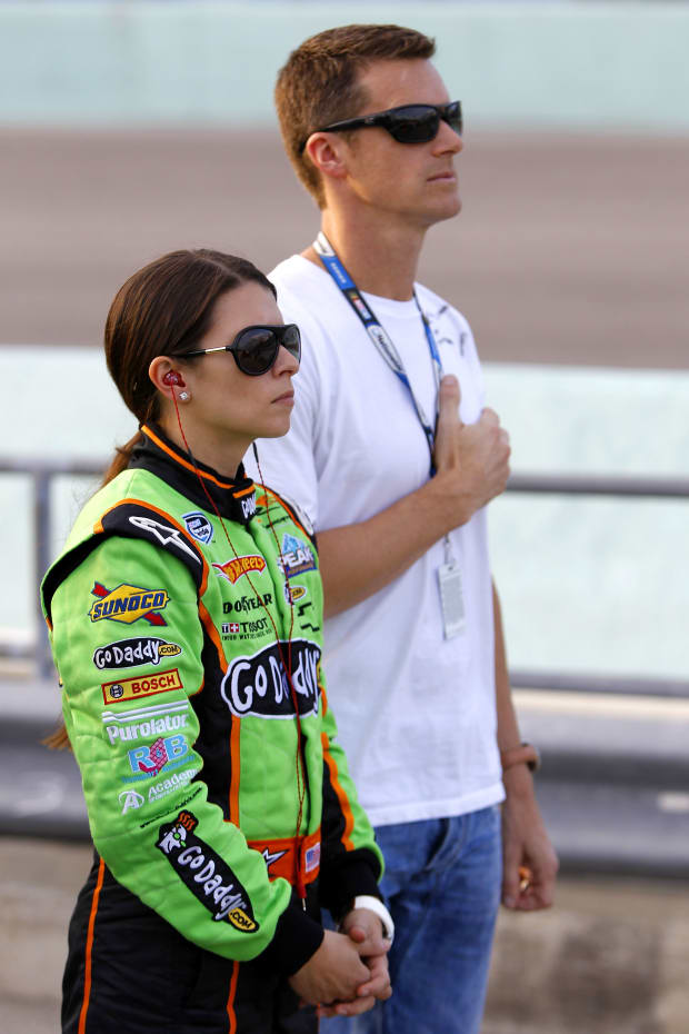 Patrick has been through a divorce, as well. She was previously married to someone she met through racing.