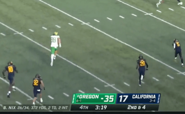 Patrick helped extend the Ducks’ lead to 42-17 before Cal tacked on a garbage-time touchdown later in the quarter to make it a 42-24 final.