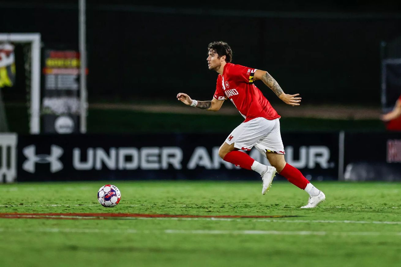 Midfielder Leon Koehl stepped up for Maryland’s first spot kick of 2024 and sent a rocket toward the bottom-right that deflected off Batrouni en route to the back of the net.