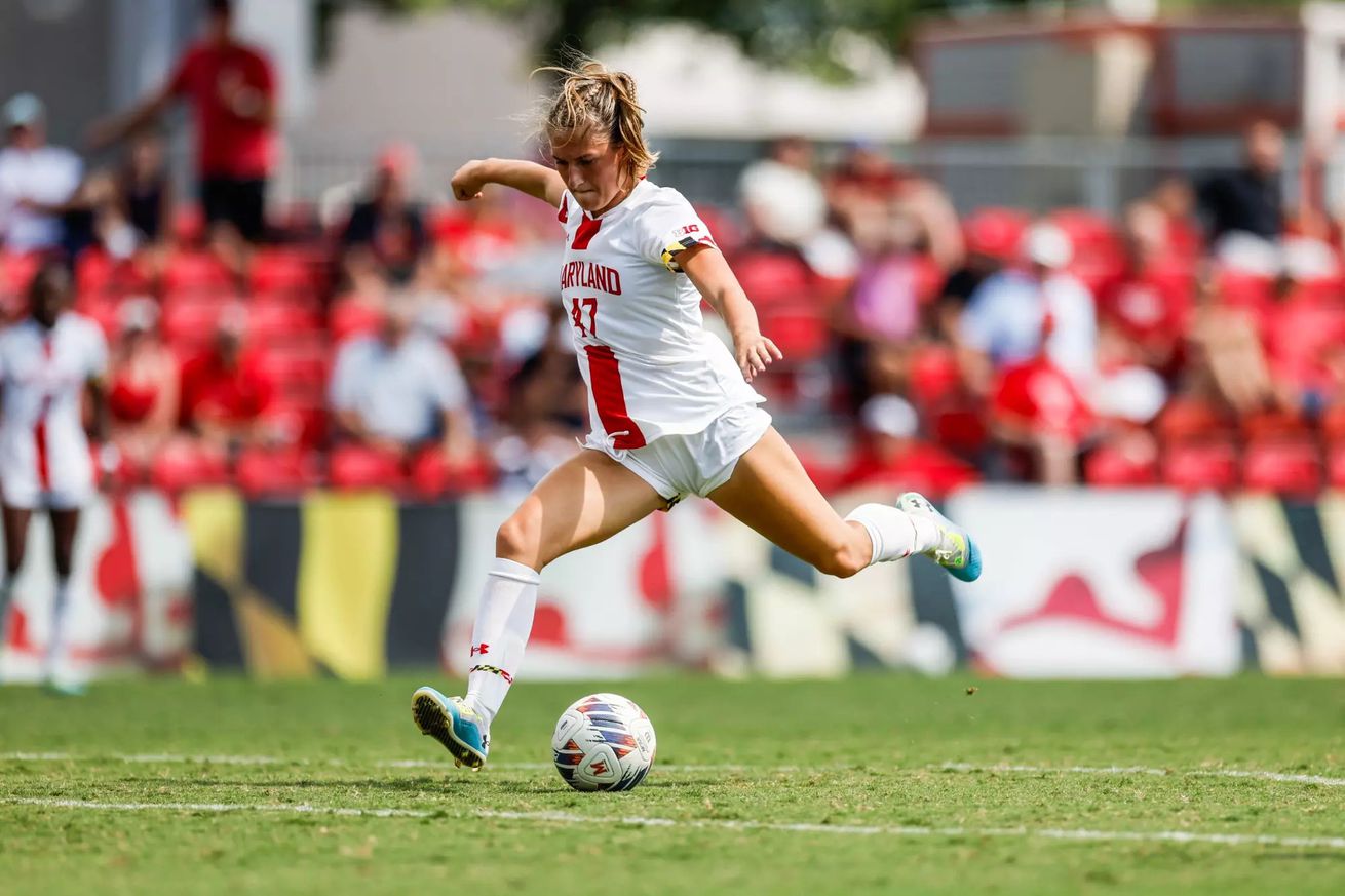 Maryland finally took its first shot on net in the 28th minute, but Ava Morales’ try was stopped by Addison Roemer. In the next few minutes, Maryland piled on two more chances.