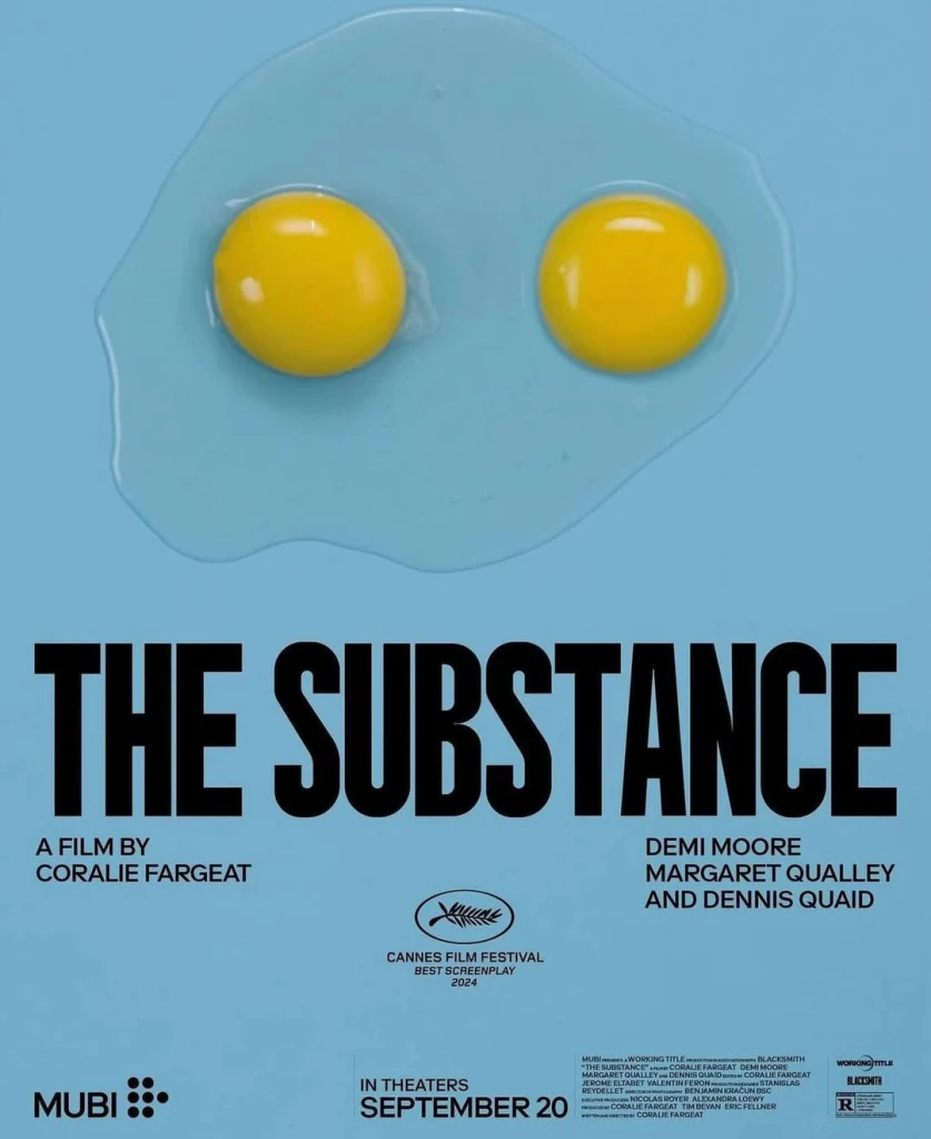 “One of my favorite films of 2024 was The Substance. I love when horror films center the unimaginable dread of being a woman. Strange, sterile, and a pastel gore nightmare, I feel like the posters capture the bizarre icons within the film really well. What came first, the chicken or the egg? Or was the chicken modified, processed and fried beyond our comprehension [so] it is no longer recognizable from its original form? Summarizing all of these elements, and without showing Demi Moore’s face, no less, is such a bold choice. I also love the condensed typeface they used for the title and kept within the entirety of the film. From the look of the key art into the picture, I appreciate the commitment to consistency within the branding.” —Tori Huynh