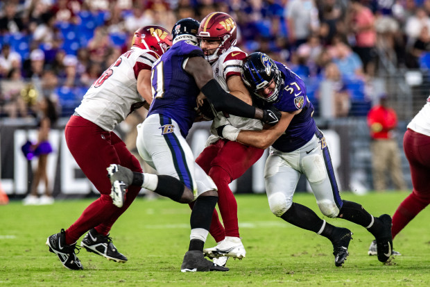 Ravens wide receiver Tylan Wallace caught a short pass near the sideline while being guarded by Washington’s Emmanuel Forbes. Forbes tried to punch the ball out, and his continued effort annoyed Wallace, who threw a jab at the rookie first round pick.ย